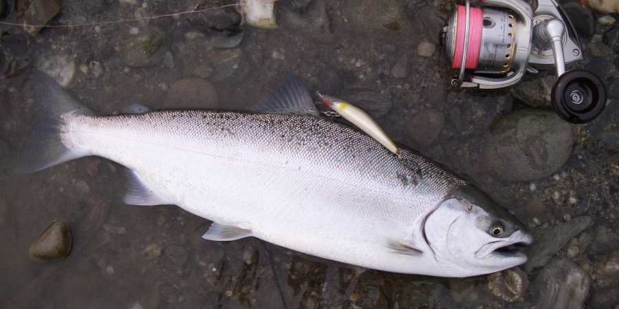 人差し指と中指に挟んでリーリングすることで、ハンドルを握ることな く手首により、回転させることができるため、高速リトリーブも楽に