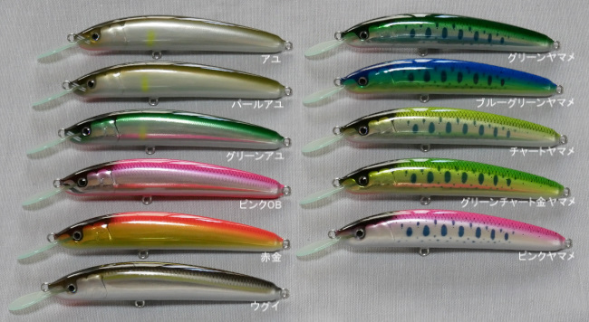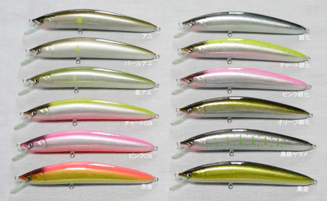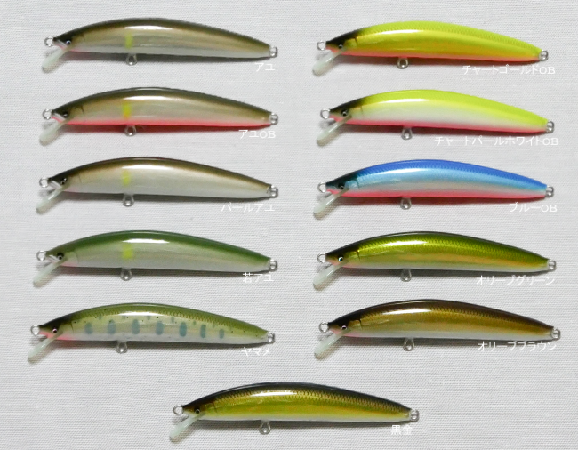 - 1106FRのボディーを少し太くし、ウエイトを2倍にしたことで、同じ泳ぎと、1.3倍の飛距離を得たミノーです。